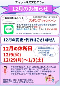 ◆「フィットネスプログラム」スケジュール・レッスン紹介・当月のお知らせ